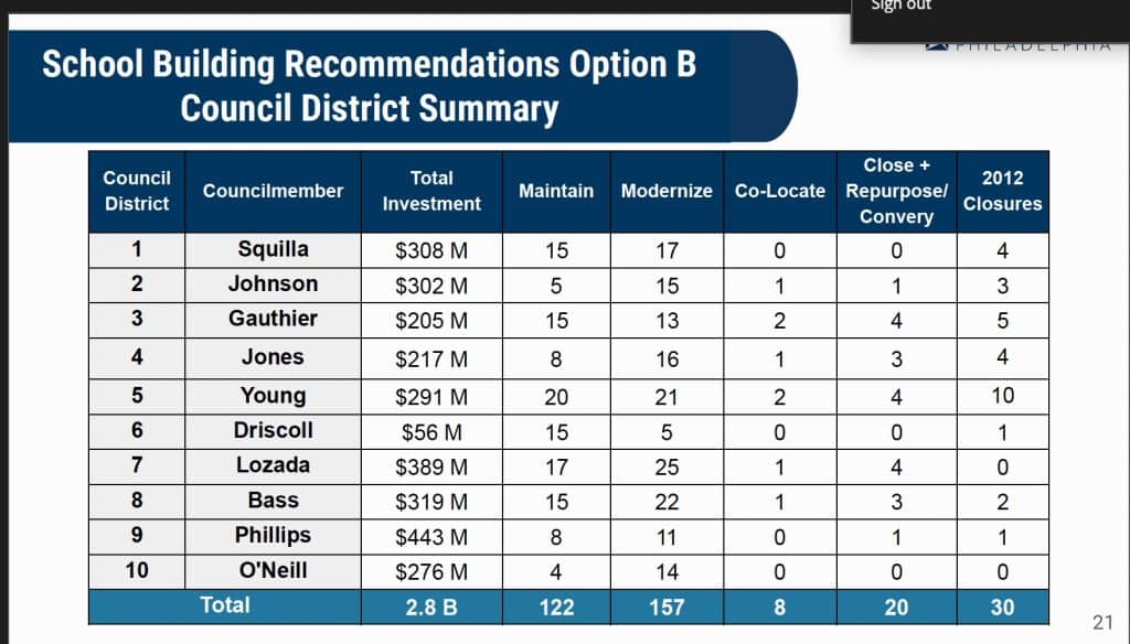 Council President Kenyatta Johnson inquired as to the methodology utilized to make the closure decisions, wondering why some schools were being closed and students relocated when it might be more beneficial and cost-effective for an aging school to be torn down and a new one built to replace it.